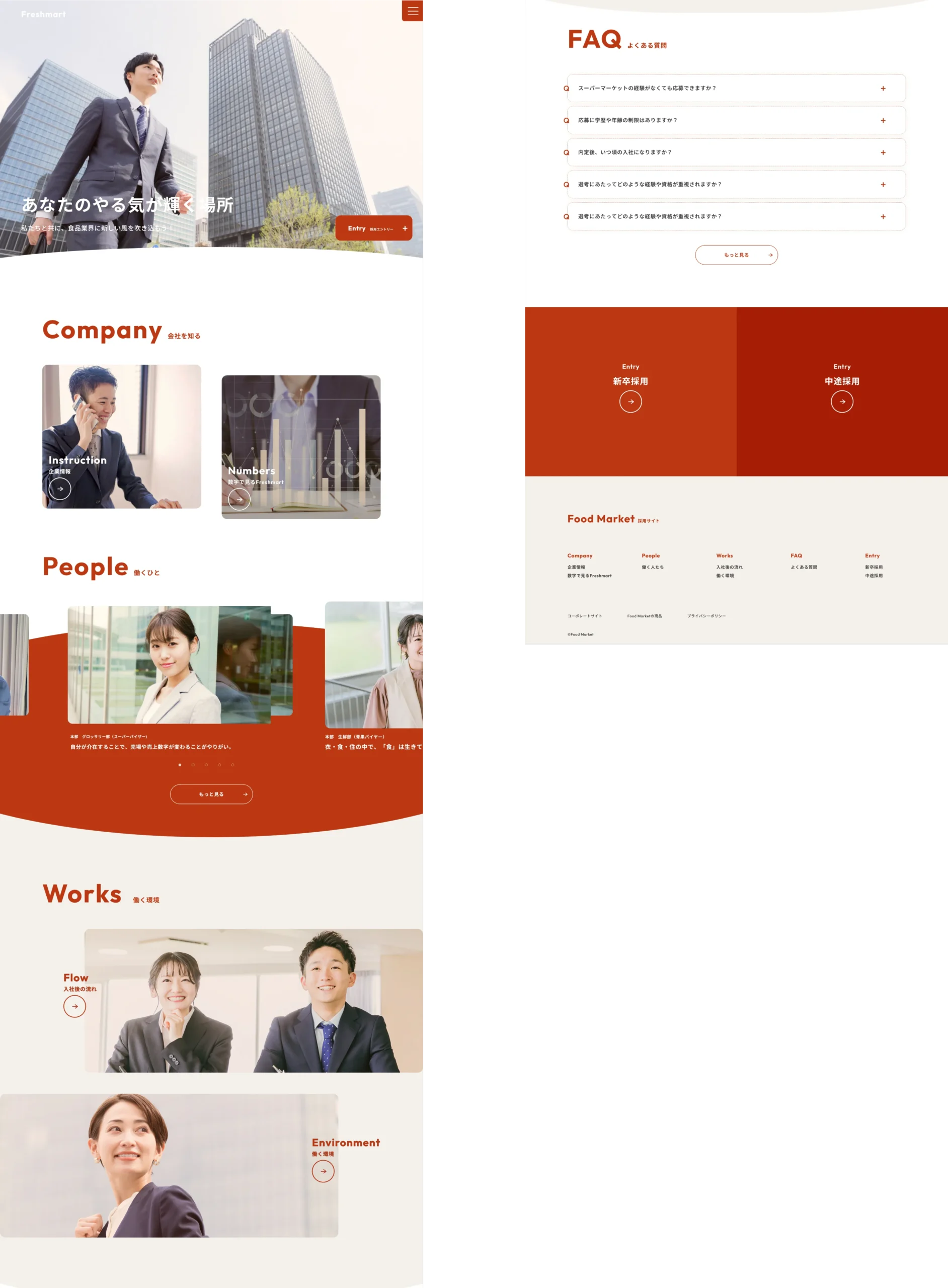 ・働くひとページやFAQページで会社で実際に働くイメージをもってもらえるように採用サイトを作りました。